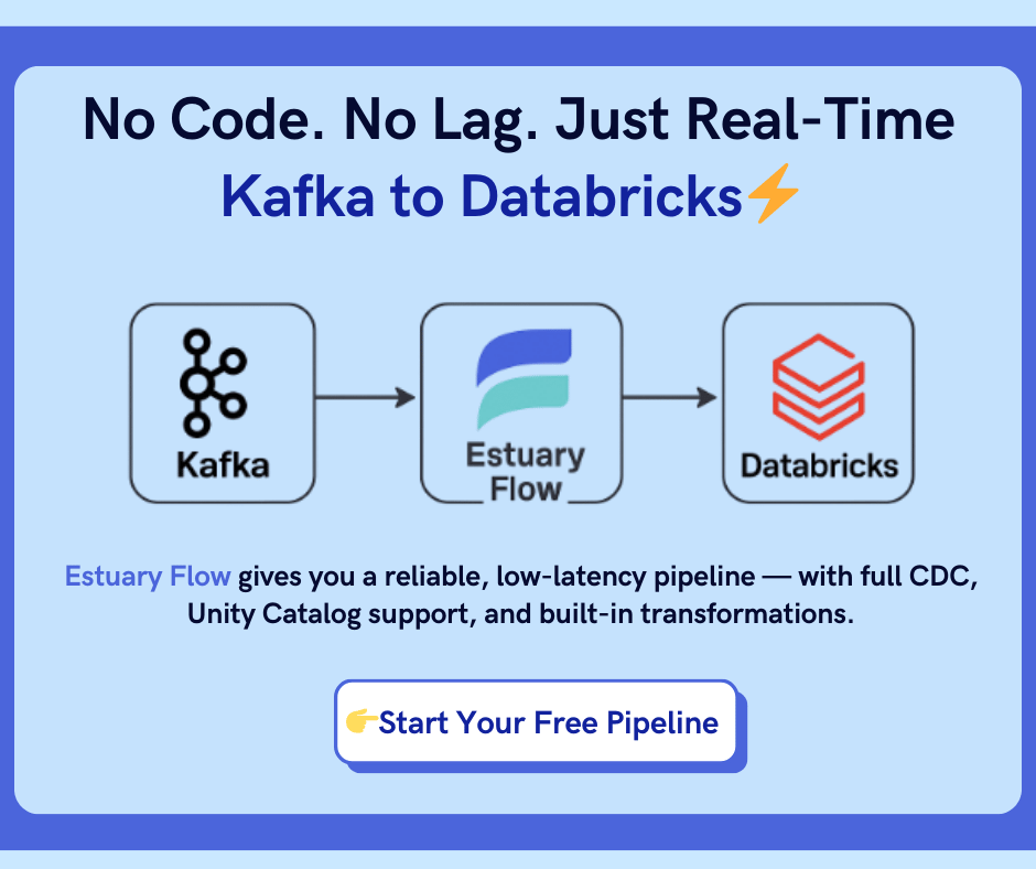 💡 Ready to go from Kafka to Databricks in minutes? Start your free Estuary Flow pipeline